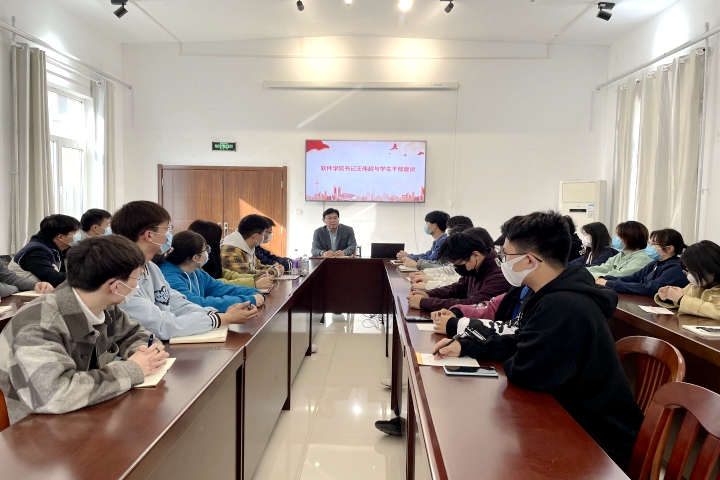 为全面落实立德树人根本任务,弘扬“好学力行”校风、“勤勉求是”学风,3月4日下午,软件学院党委书记王伟超与2021级学生干部代表座谈交流。