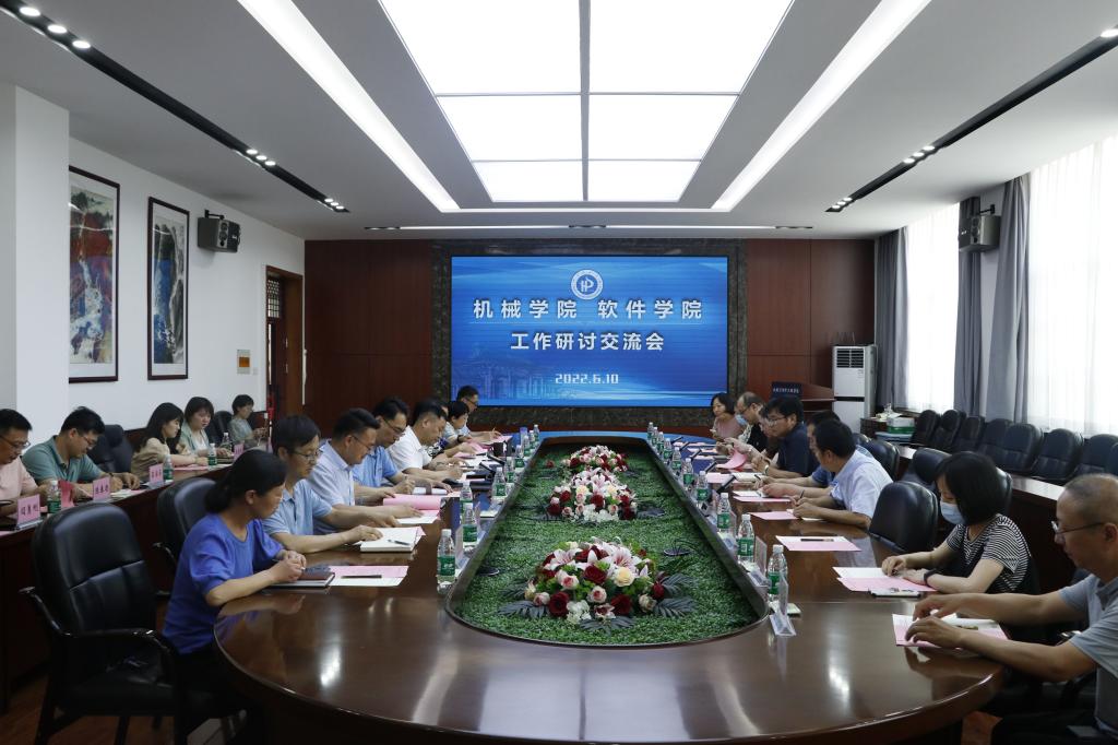为促进学院之间的交流与合作,探索党建工作、人才培养、科学研究等方面工作新思路新方法,2022年6月10日下午,软件学院党委书记王伟超、各科室主任、党支部书记及其他科级干部、教师代表到机械学院参观并开展研讨交流。机械学院党委书记聂凯、党委副书记许荣梅、副院长焦锋、明平美、张登攀、各科室主任、党支部书记及其他科级干部等参加研讨交流会,会议由许荣梅主持。