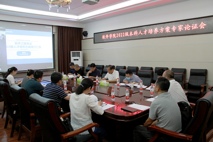 为科学制定2022版本科专业人才培养方案,软件学院在前期扎实工作的基础上,于2022年6月25日上午在计算机楼217会议室以线上线下相结合的方式召开专家论证会。出席论证会的专家有教育部软件工程专业教学指导委员会副主任委员、国家示范性软件学院联盟理事长、北京交通大学卢苇教授,教育部网络空间安全专业教学指导委员会委员、西北工业大学网络空间安全学院副院长、陕西省网络空间安全工程实验室主任慕德俊教授,中国农业大学计算中心主任兼农业大数据实验室主任李辉教授,全国高校大数据教育联盟副秘书长、优选创新(北京)科技有限公司总经理张士运,中国电子科技集团公司首席专家、中国电科30所副总工程师张文政研究员,豫信电子科技集团技术服务部副总经理于铭梁高级工程师。教务处相关领导、学院领导、各系主任、各专业负责人、院学术委员会委员以及教师代表参加论证会,会议由软件学院院长贾宗璞主持。
