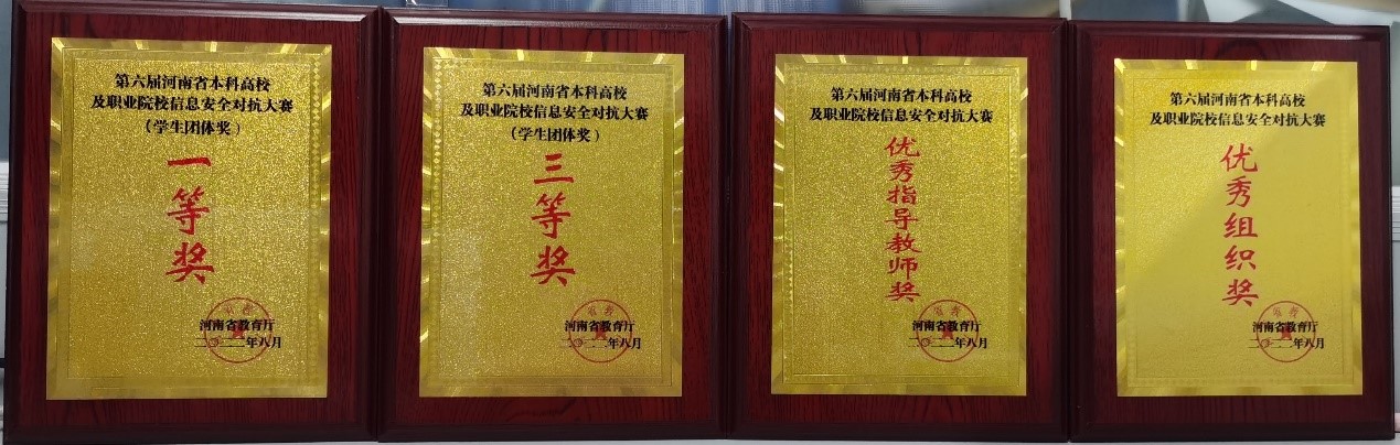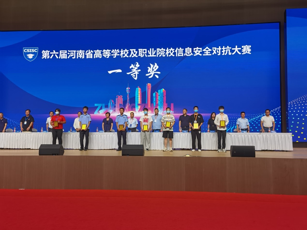 2022年8月19日上午,第六届河南省高校及职业院校信息安全对抗大赛在河南经贸职业学院落下帷幕,我院学生田家玮、王晨等同学组成的队伍在全省60余支本科组队伍中喜获对抗赛一等奖及应急响应赛三等奖,赵宗渠老师获优秀指导教师奖,河南理工大学奖优秀组织奖。