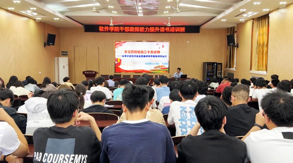 为贯彻落实《中共河南理工大学委员会关于在全校党员中深入开展学习贯彻习近平新时代中国特色社会主义思想主题教育的实施方案》精神,提升学院干部教师政治素质和工作能力水平,6月1日下午,我院举办干部教师能力提升读书培训班,并特邀学校宣讲团专家孔祥增副教授作专题报告《学习贯彻党的二十大精神——以中国式现代化全面推进中华民族伟大复兴》,学院全体干部教师及部分学生代表参加了报告会,报告会由学院党委书记王伟超主持。