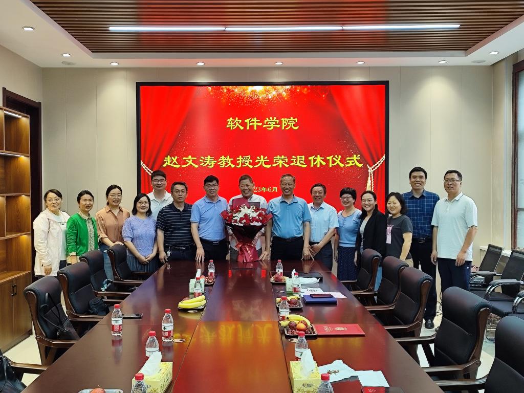 6月2 日上午,学院在党员活动室举行赵文涛教授荣休仪式。荣休教师赵文涛和学院领导班子成员、部分教工代表参加仪式。仪式由学院副院长赵珊主持。
