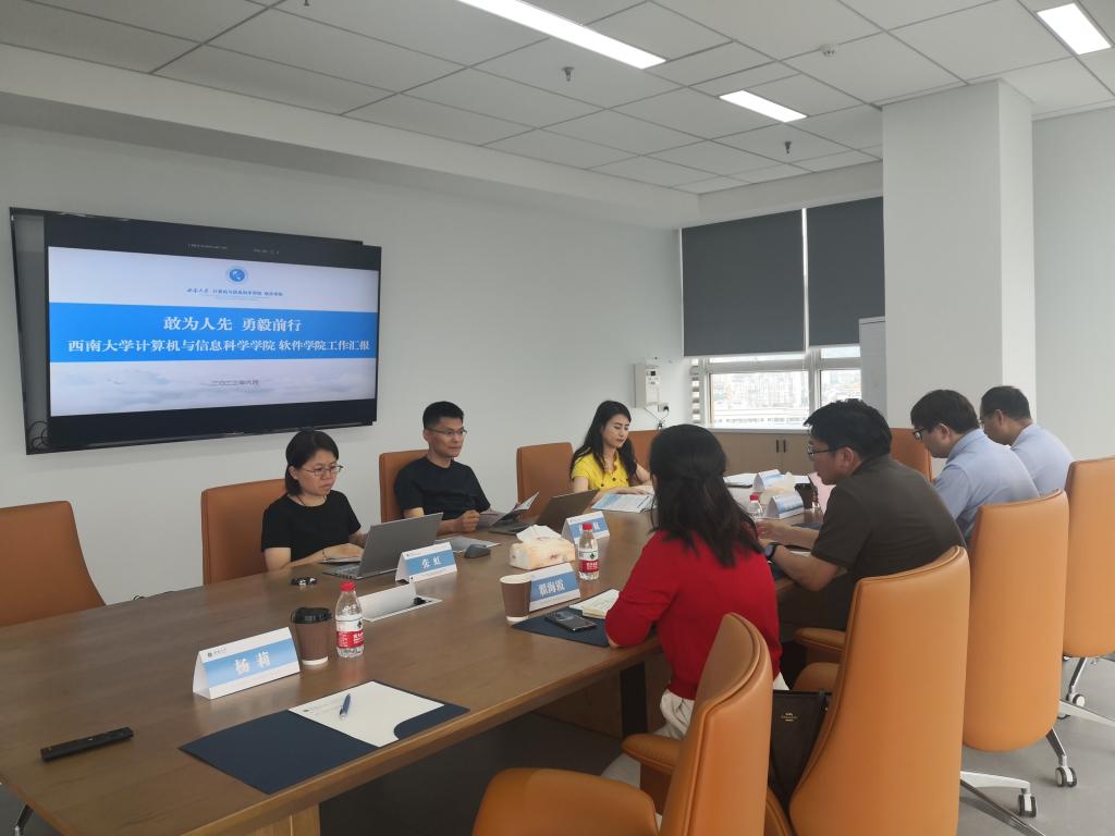 在前期网络调研的基础上,选取西南片区国家级特色化示范软件学院作为本次调研单位。6月13日,王伟超一行首先到云南大学软件学院、昆明理工大学信息工程与自动化学院,双方就软件学院办学特色、党建工作经验、学生工作品牌、人才培养模式、实验室建设和人才引进政策等进行了深入探讨交流和宣传推介。随后,实地参观了云南大学虚拟仿真实验室、智慧农业实验室、昆明理工大学人工智能实验室等,详细咨询学院、实验室建设及运行管理情况。6月14日-15日,在西南大学计算机学院(软件学院)、重庆大学计算机学院、软件学院,王伟超一行就专业认证、学院发展规划、博士人才引进等情况进行了现场调研和交流,认真学习双一流、985、211高校软件学院建设的先进办学经验。调研中,王伟超结合软件学院实际工作,要求学院各管理科室、专业系室等要着眼软件类专业建设前沿,扎实做好科学合理规划,把学科交叉融合和产学研融合相统一,努力做到党业融合、师生共创,逐步建成特色鲜明、创新驱动、文化深厚的特色化示范性软件学院。