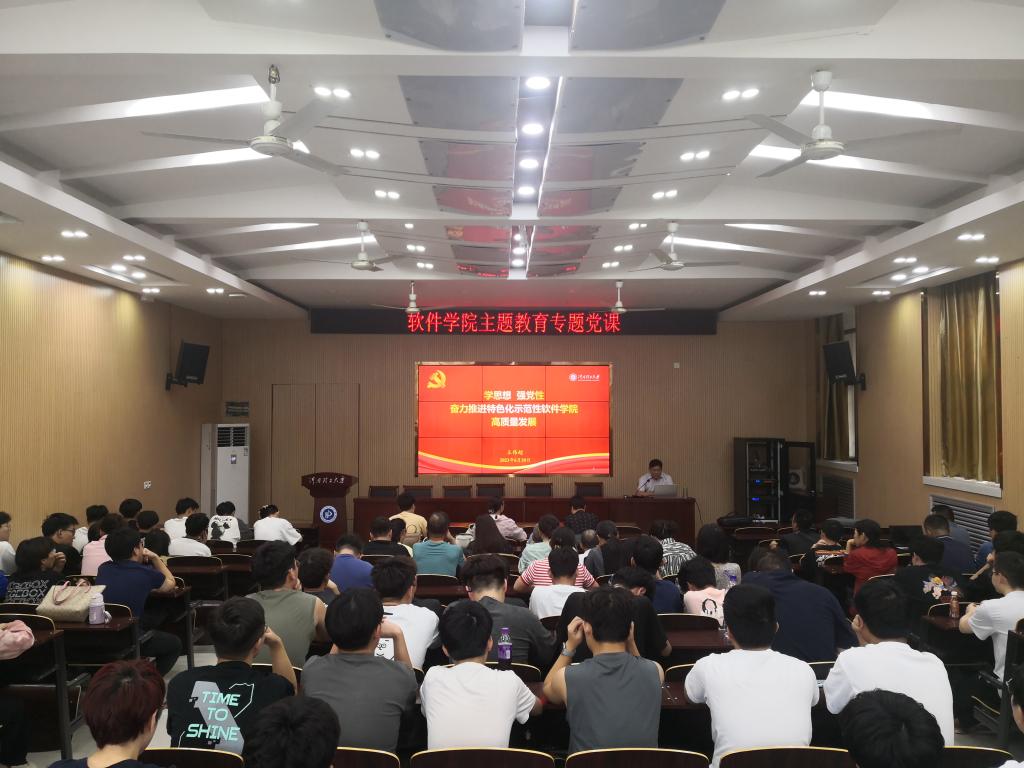 王伟超以“学思想、强党性,奋力推进特色化示范性软件学院高质量发展”为题,从为什么学?做到主动学习,认识到学习习近平新时代中国特色社会主义思想重要意义;怎么样学?做到点面结合,自觉用习近平新时代中国特色社会主义思想改造主观世界;怎么样用?做到学用转化,坚持用习近平新时代中国特色社会主义思想指导工作实践等三个方面阐述了如何牢牢把握主题教育总要求,全方位、多方面理解和把握习近平新时代中国特色社会主义思想,学深悟透并在实际工作和学习中强化运用。王伟超强调,全体师生要深刻领会习近平新时代中国特色社会主义思想的科学内涵和精神实质,切实增强办好特色化示范性软件学院的思想自觉和行动自觉。希望全体师生能通过此次主题教育的学习,落实好立德树人根本任务,持续努力,不懈奋斗,奋力推进特色化示范性软件学院高质量发展。