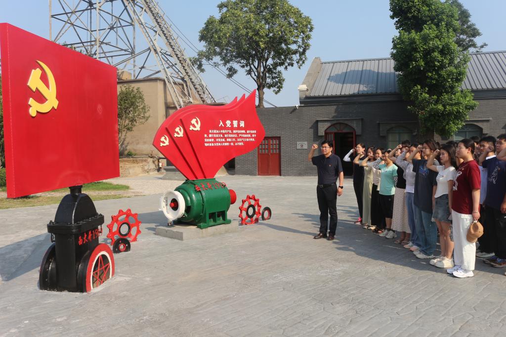首先,全体党员师生来到西大井红色教育基地,在讲解员的带领下,先观看了情景剧“矿工夜校”“井口怒吼”,生动展现了那段激情岁月。随后参观了中共焦作矿区委员会旧址、焦作煤矿工人大罢工旧址、拥有百年历史的“西大井”井台、原英福公司电厂机房、英雄广场、家风家训文化馆、焦作楷模人物馆等场馆,深切感受了革命先烈不畏艰险、敢于牺牲的大无畏精神和焦作煤矿工人“特别能战斗”的伟大精神。在英雄广场,全体师生党员面对鲜红的党旗重温入党誓词,进一步树立对党矢志不渝、传承红色基因的坚定信念。