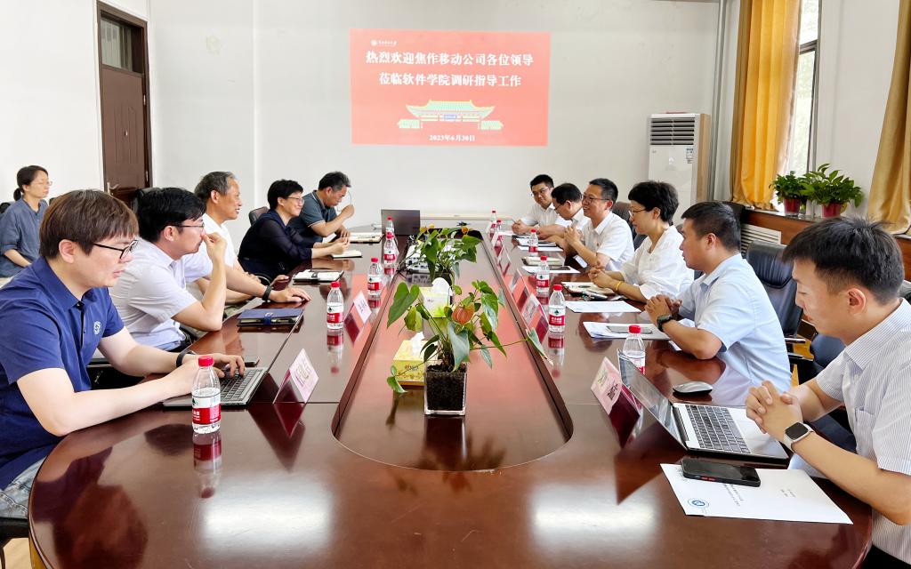 6月30日上午,中国移动通信集团河南有限公司焦作分公司副总经理尹书鹏、政企部经理翟慧敏等一行六人到软件学院开展校企合作交流。交流会在软件学院楼310举行,软件学院领导及相关科研团队负责人参加。