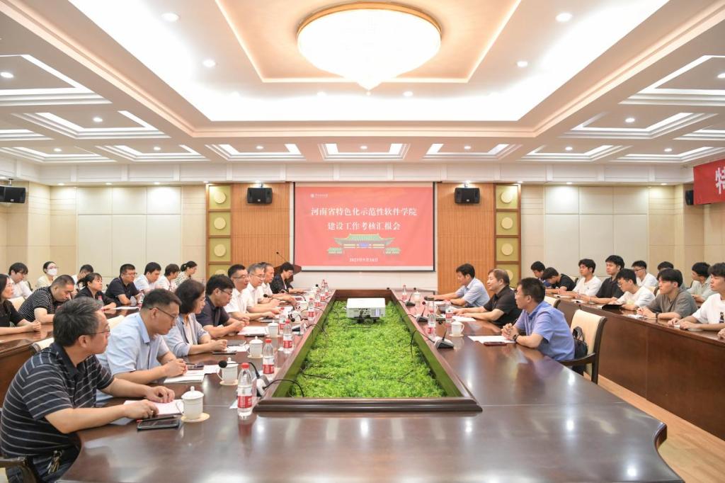 9月14日上午,省教育厅特色化示范性软件学院考核组莅校考核我校特色化示范性软件学院建设工作,考核汇报会在力行楼一楼方形会议室召开。考核组组长、郑州航空工业管理学院副校长李捷,考核组成员、河南大学特色化示范性软件学院院长何欣、河南工业大学特色化示范性软件学院院长张庆辉3人出席会议,河南理工大学副校长赵同谦出席会议并致辞,会议由教务处处长牛海鹏主持。软件学院领导、教师代表及学生代表参加会议。