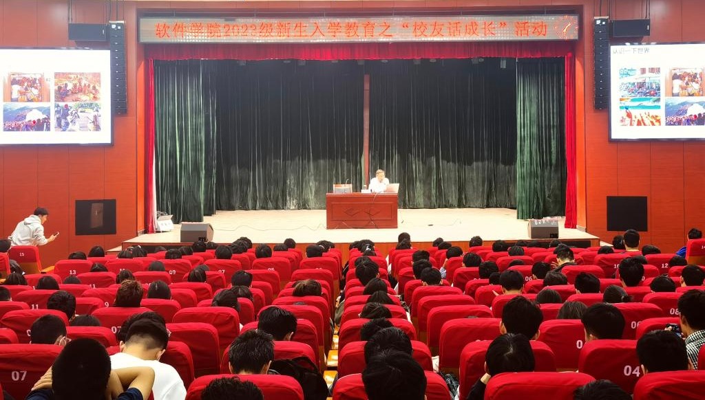 为发挥优秀校友榜样引领作用,激励学生奋发学习,10月21日下午,软件学院在北校区小礼堂开展2023级新生入学教育之“校友话成长”系列活动。我校2001级校友官琪受邀主讲,软件学院学生共计400余人共同参加活动。