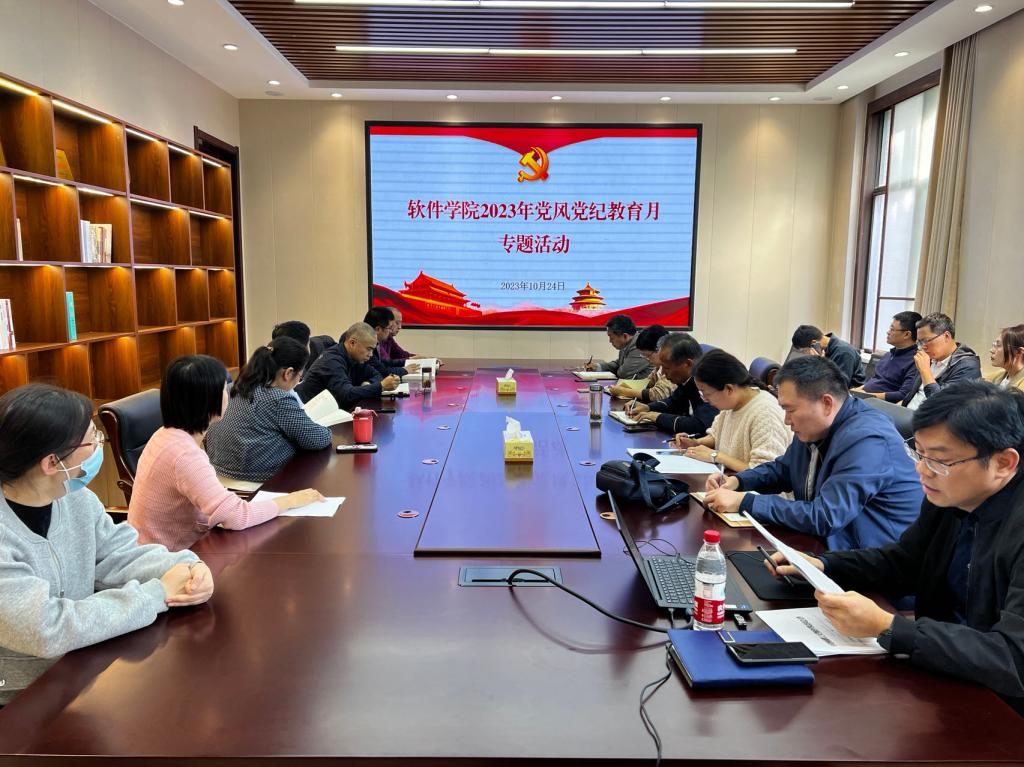 为扎实开展党风党纪教育月和清廉校园创建活动,10月24日下午,软件学院在党员活动室举办2023年党风党纪教育月专题活动,会议由学院党委书记王伟超主持,全院教师及学生党员代表参加活动。
