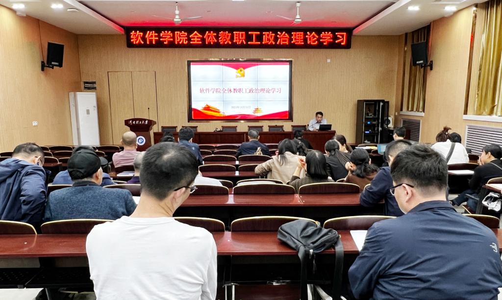2023年10月31日下午,软件学院在北校区学术报告厅召开全体教职工政治理论学习会议,全体教职工参加学习,会议由副院长汤永利主持。