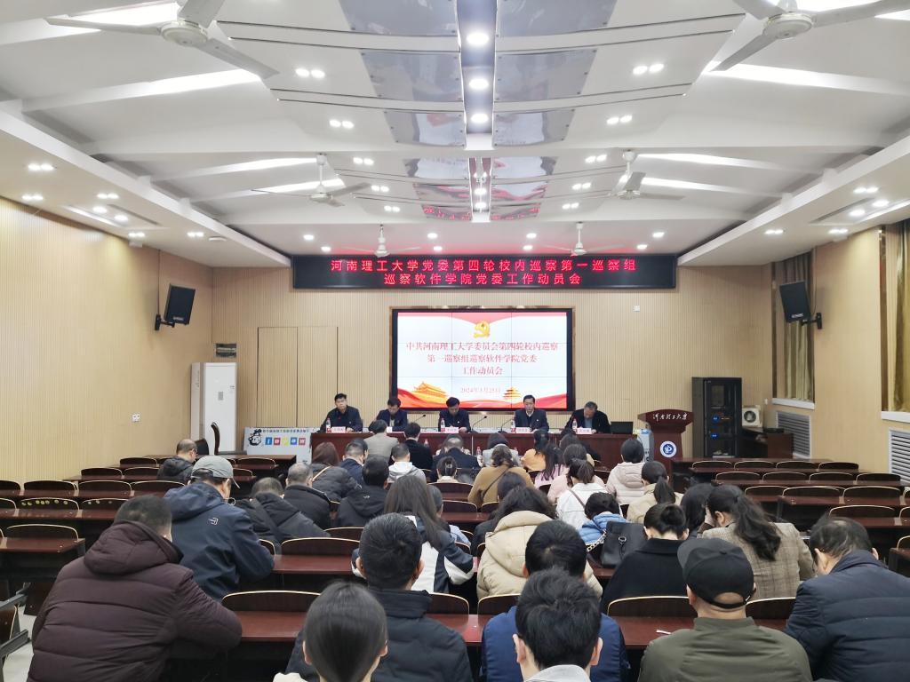 3月25日下午,校党委第一巡察组巡察软件学院党委工作动员会在北校区学术报告厅召开。校纪委副书记李照修,校党委第一巡察组组长徐亚富,副组长郑伟及巡察组全体成员出席会议;软件学院领导班子成员、党委委员、教工党支部书记、系(所、室、中心等)负责人、学科带头人、教授代表、党外代表人士、师生代表、离退休人员代表等参加会议。会议由软件学院党委书记王伟超主持。