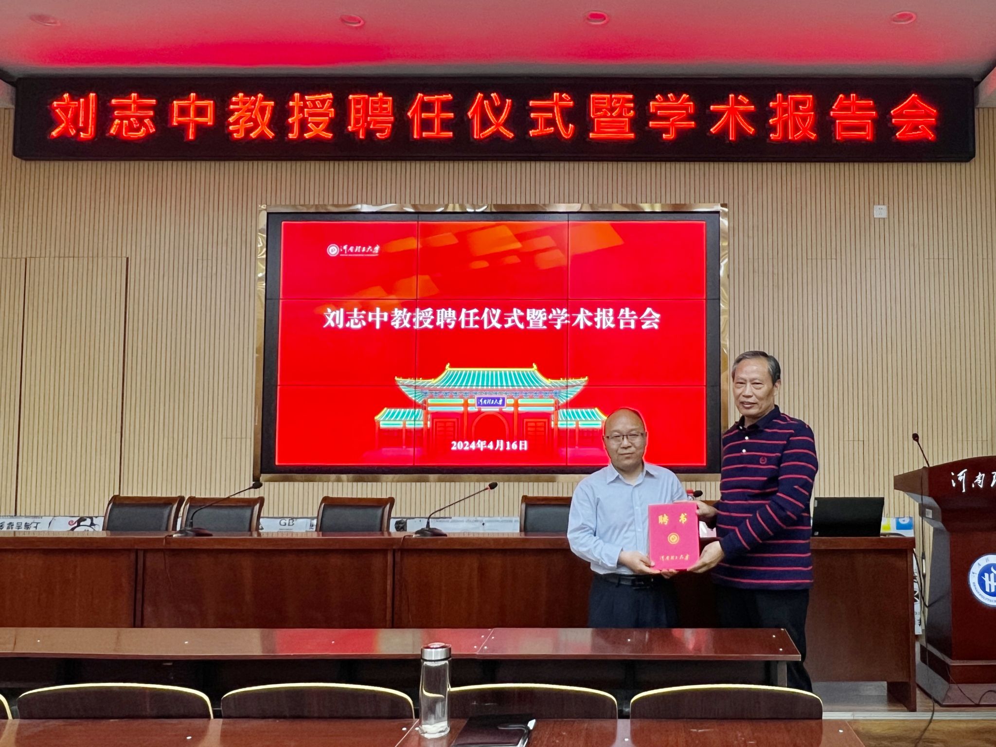 4月16日下午,软件学院在北校区学术报告厅举行特聘教授聘任仪式,聘任烟台大学刘志中教授为软件学院特聘教授。软件学院院长贾宗璞为刘志中颁发聘书,教师代表为刘志中献花。