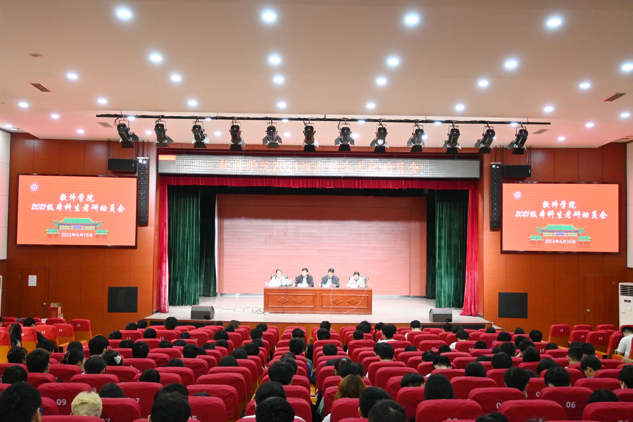 为进一步激励学院2021级学生考研深造,提高学生的考研热情,明确考研目标,掌握科学考研方法,4月16日下午,软件学院于北校区小礼堂举行2021级本科生考研动员会。软件学院党委书记王伟超、党委副书记张艳明、2021级专兼职辅导员和2021级全体本科生参加会议。会议由张艳明主持。