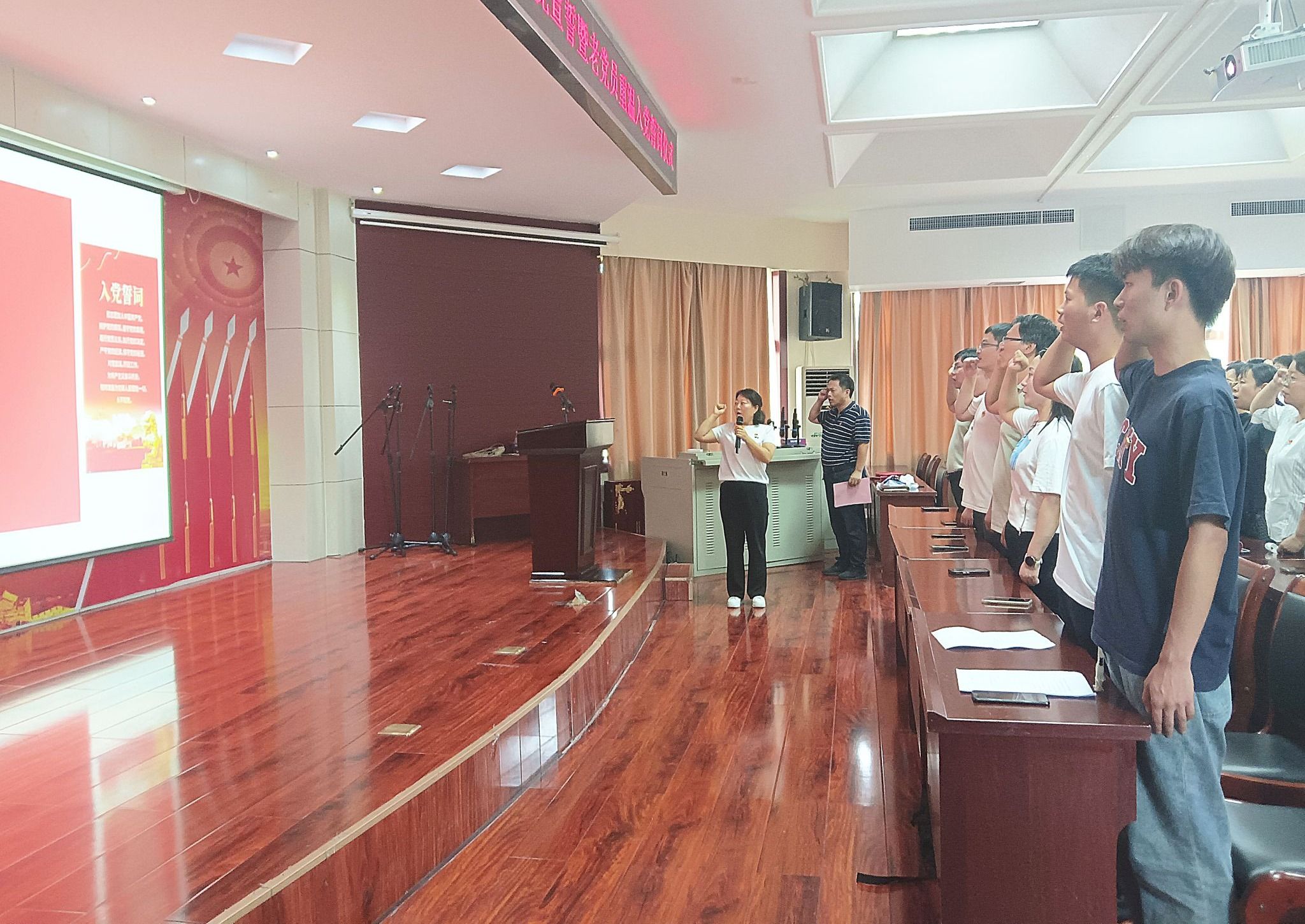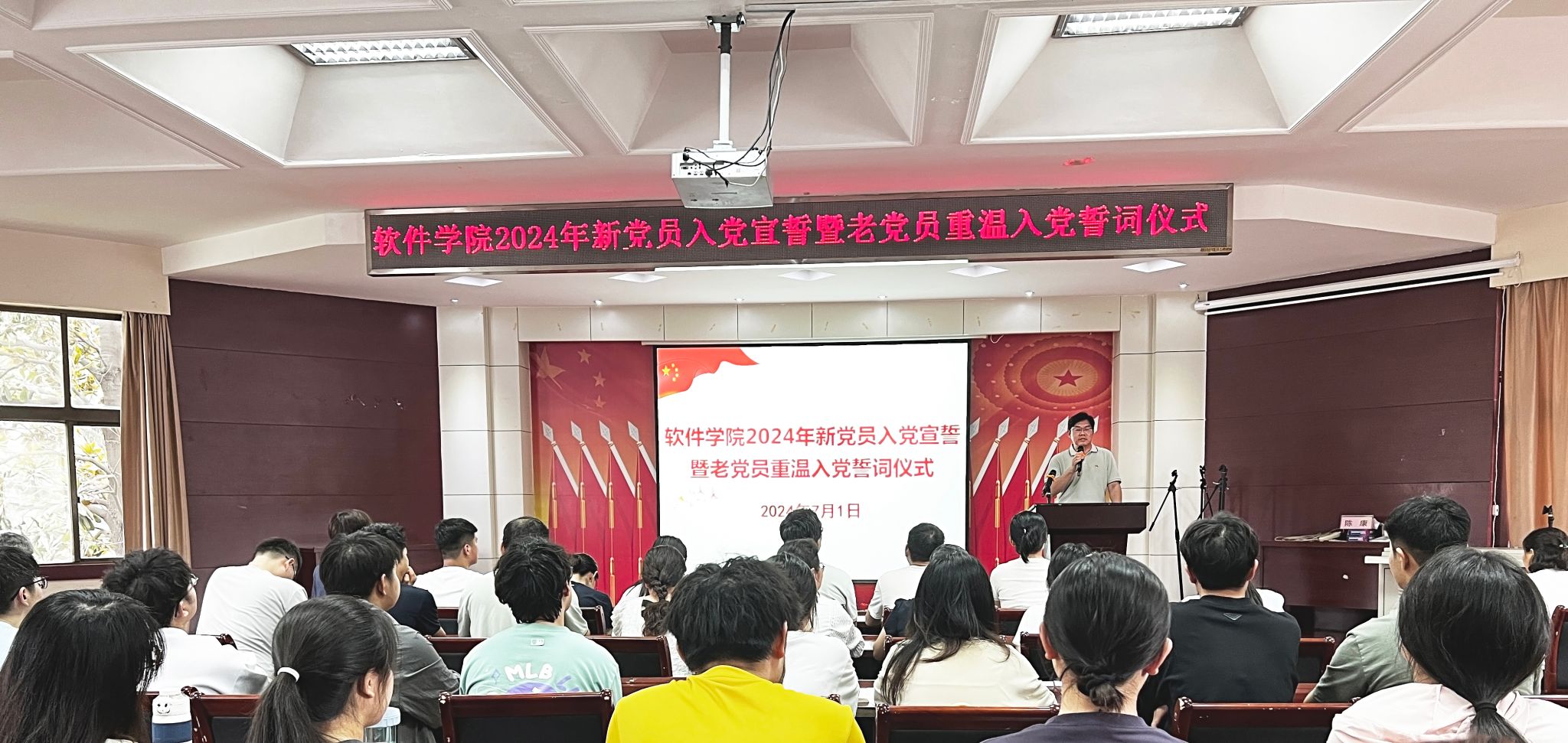 为增强党员的责任感、使命感和荣誉感,引导党员时刻牢记身份,践行入党誓词,在“七一”来临之际,7月1日下午,软件学院在北校区学术报告厅举行新党员入党宣誓暨老党员重温入党誓词仪式,学院全体师生党员参加了宣誓仪式。