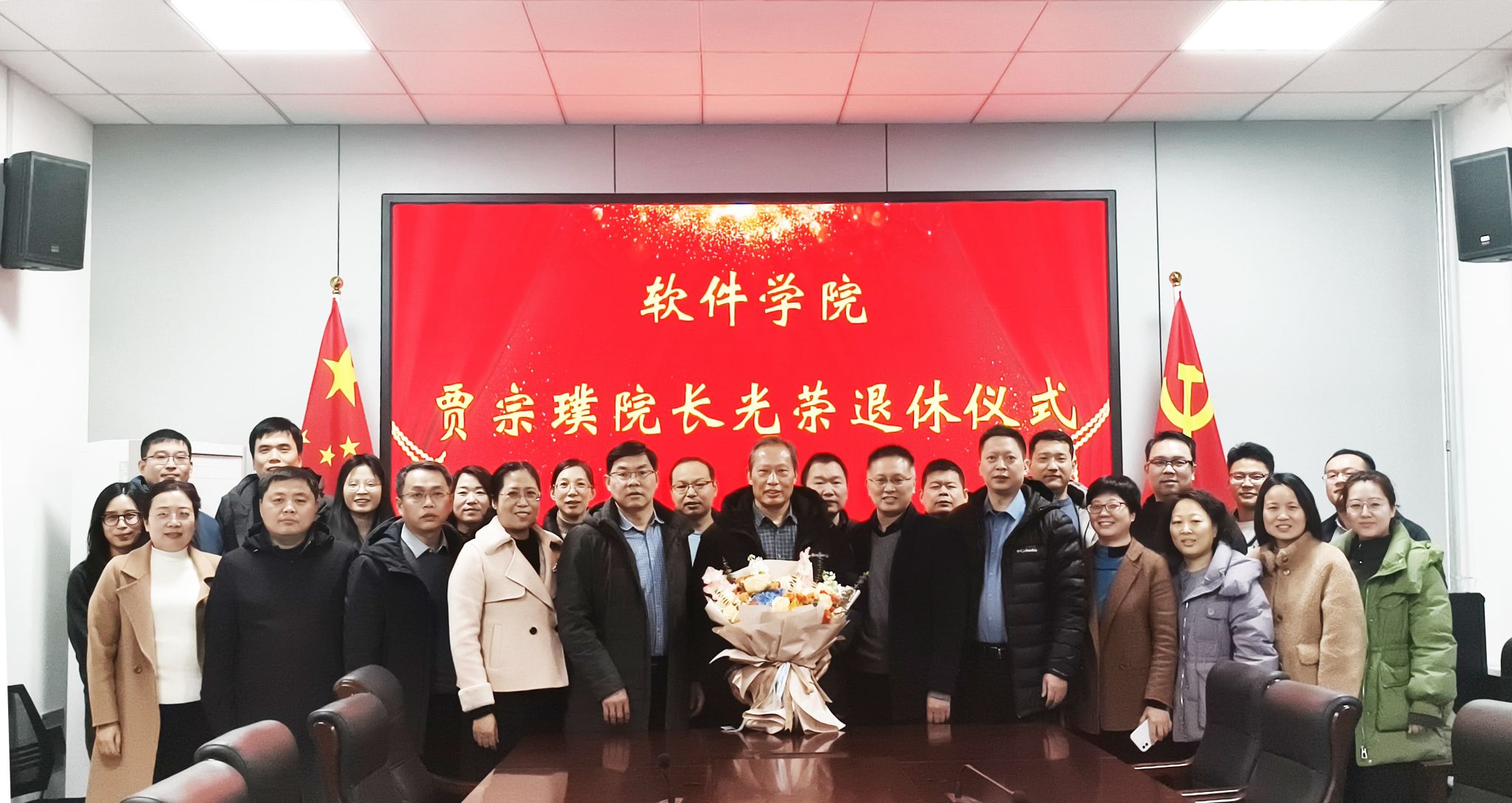 1月17日上午,学院在软件楼党员活动室举行贾宗璞院长荣休仪式。贾宗璞院长和学院领导班子成员以及计算机学院领导、教师代表参加仪式。仪式由学院党委副书记张艳明主持。