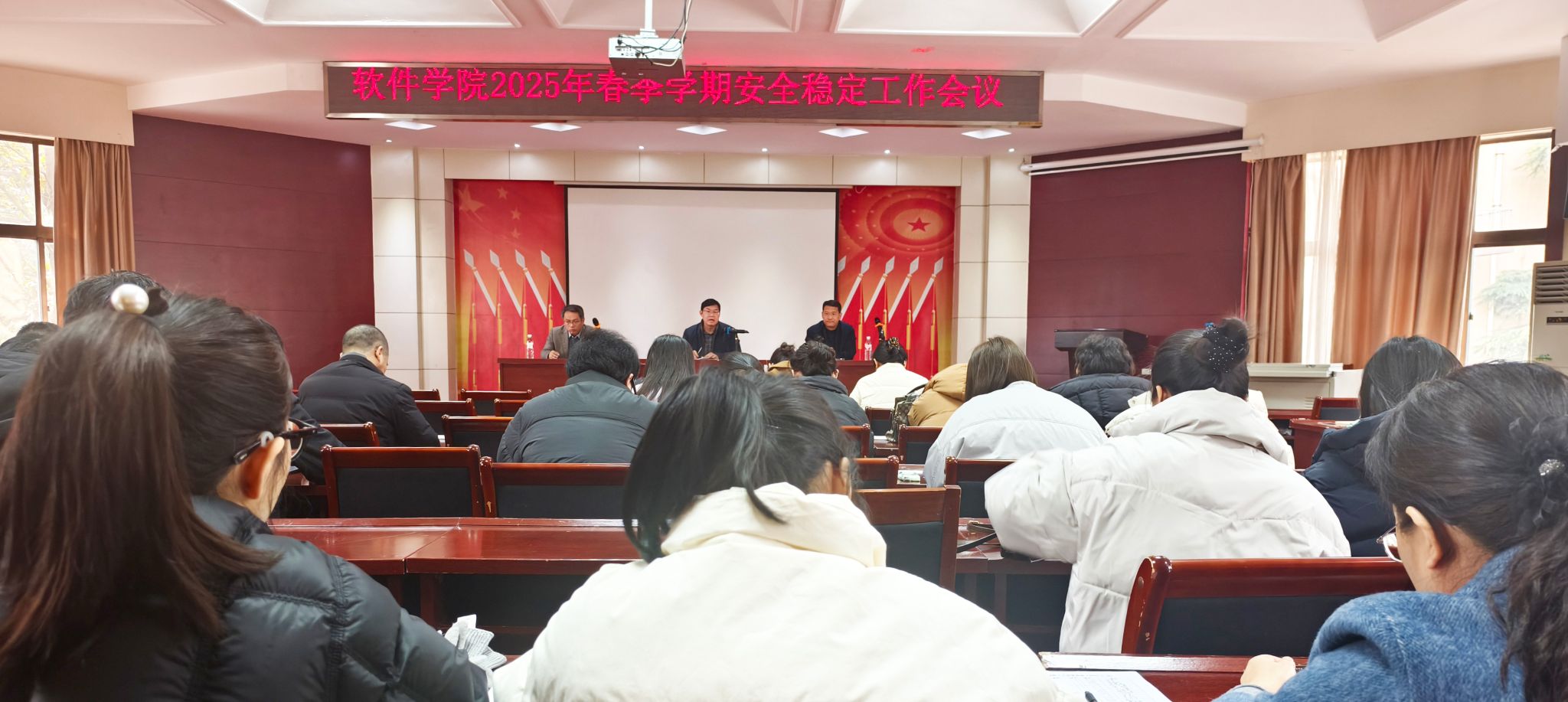 2025年2月18日,软件学院召开了2025年春季学期安全稳定工作会议。学院领导、全体教师参加了此次会议,会议由学院党委书记王伟超主持。