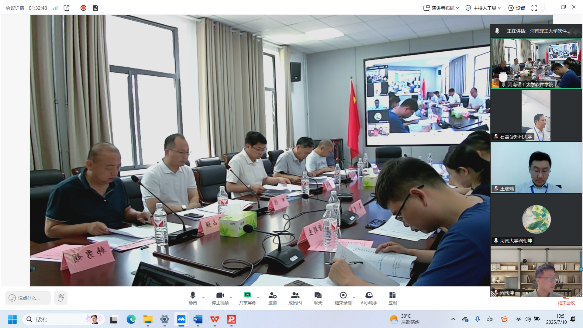 为科学制定2025版本科专业人才培养方案,软件学院在前期系统调研的基础上,于2025年7月10日上午在软件楼223会议室以线上线下相结合的方式召开2025版本科专业人才培养方案专家论证会。出席论证会的专家有郑州大学网络空间安全学院副院长、教授石磊,河南大学实验室与设备管理处副处长、教授阎朝坤,河南蓝鸥科技有限公司总经理王瑞端,教务处教学建设与规划科科长田恒,软件学院教授贾宗璞、安葳鹏、霍占强。学院领导、各系主任、专业负责人及教师代表参加论证会,会议由学院副院长汤永利主持。