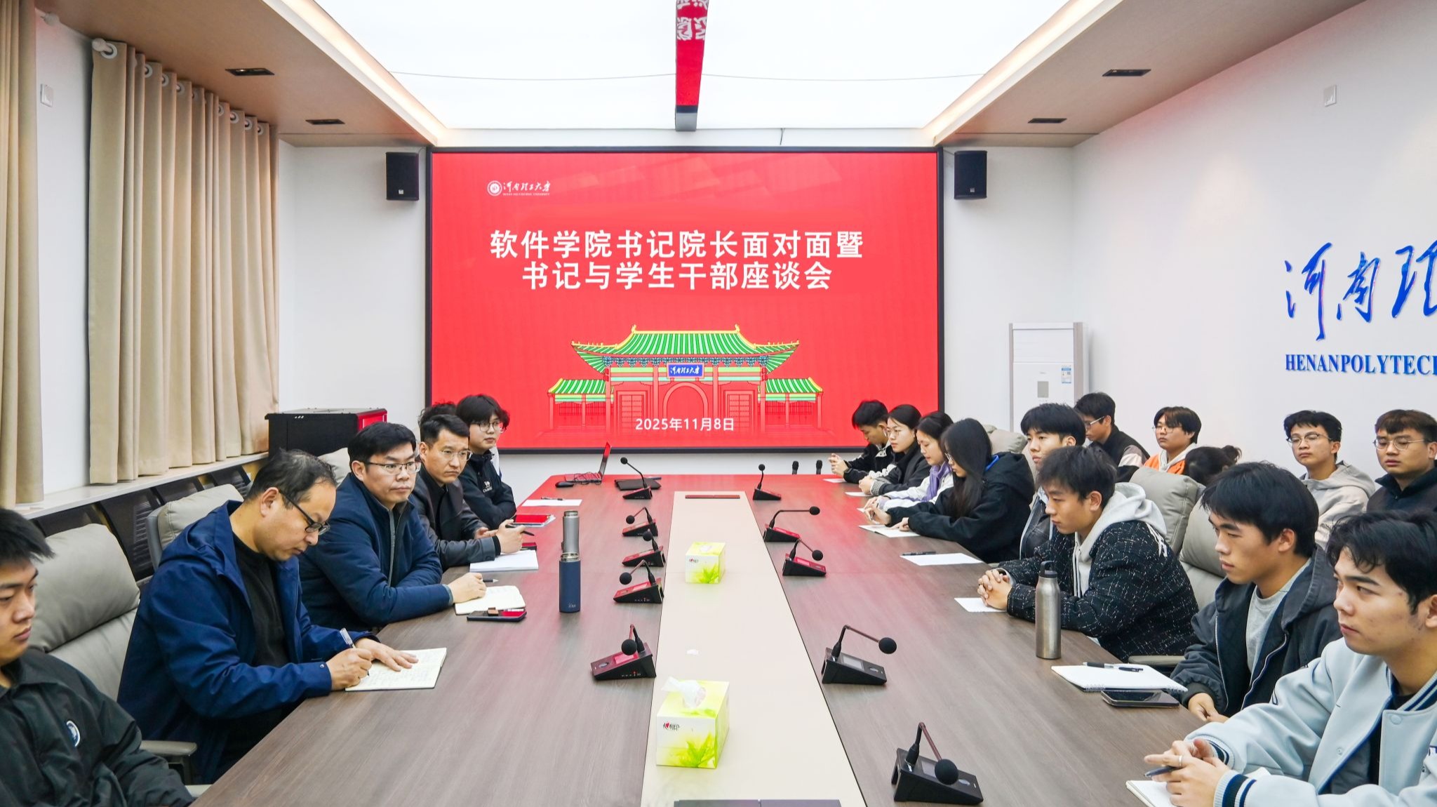 为进一步提升学院管理育人、服务育人的针对性与实效性,帮助学生干部明确岗位职责、掌握工作方法,助推学生工作高质量发展,2025年11月8日,软件学院召开书记院长面对面暨书记与学生干部座谈交流会。学院党委书记王伟超、党委副书记张艳明以及学院学工办负责人,研究生会、学生会、媒体宣传中心、专业长等主要学生干部代表参加座谈交流。