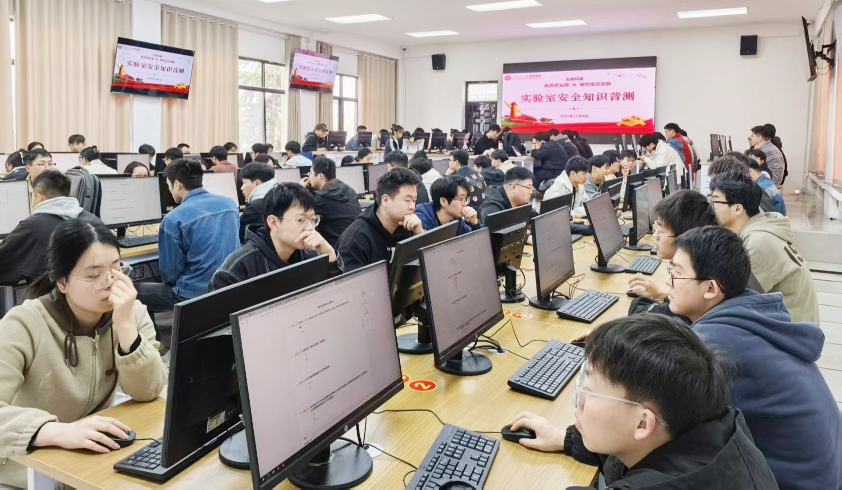宣传月活动中,软件学院结合自身实验室特点,组织学生通过学校实验室安全网络学习中心在线学习安全知识,学习内容全面覆盖实验室安全、职业健康、电器类安全和网络安全等知识领域。组织了2025级研究生入学新生在学院实验中心进行了《软件学院实验室安全水平考试》。在北校区开展了以“安全实验,平安校园”为主题的实验室安全文化宣传活动。通过专业展板、签名活动,宣传实验室用电安全、环境卫生。