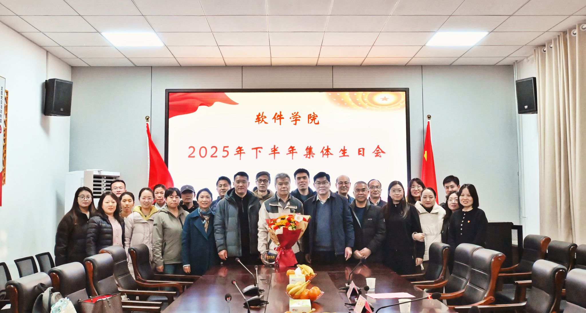 初冬时节,寒意渐浓,但软件学院223党建活动室内却暖意融融,情谊满满。为传递学院关怀,凝聚团队力量,11月18日下午,软件学院下半年教师集体生日会在此温情启幕。学院领导班子与下半年过生日的“寿星”老师们欢聚一堂,共度美好时光。生日会由学院党委副书记张艳明主持。
