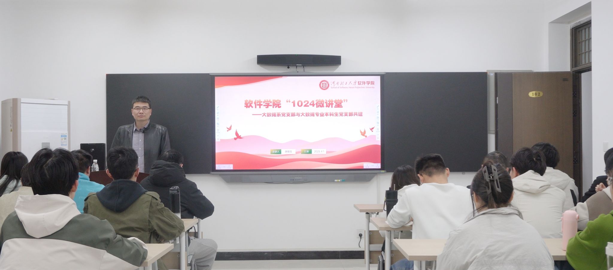 为贯彻落实立德树人根本任务,推动党建工作与专业教育紧密融合,强化师生党支部间的共建交流,4月1日下午,软件学院在多功能教室举办第三期“1024微讲堂”活动。学院大数据系教工党支部全体党员以及大数据系本科生党支部党员、发展对象和入党积极分子参与此次活动。本期“1024微讲堂”主讲嘉宾为大数据系支部书记唐朝生副教授。