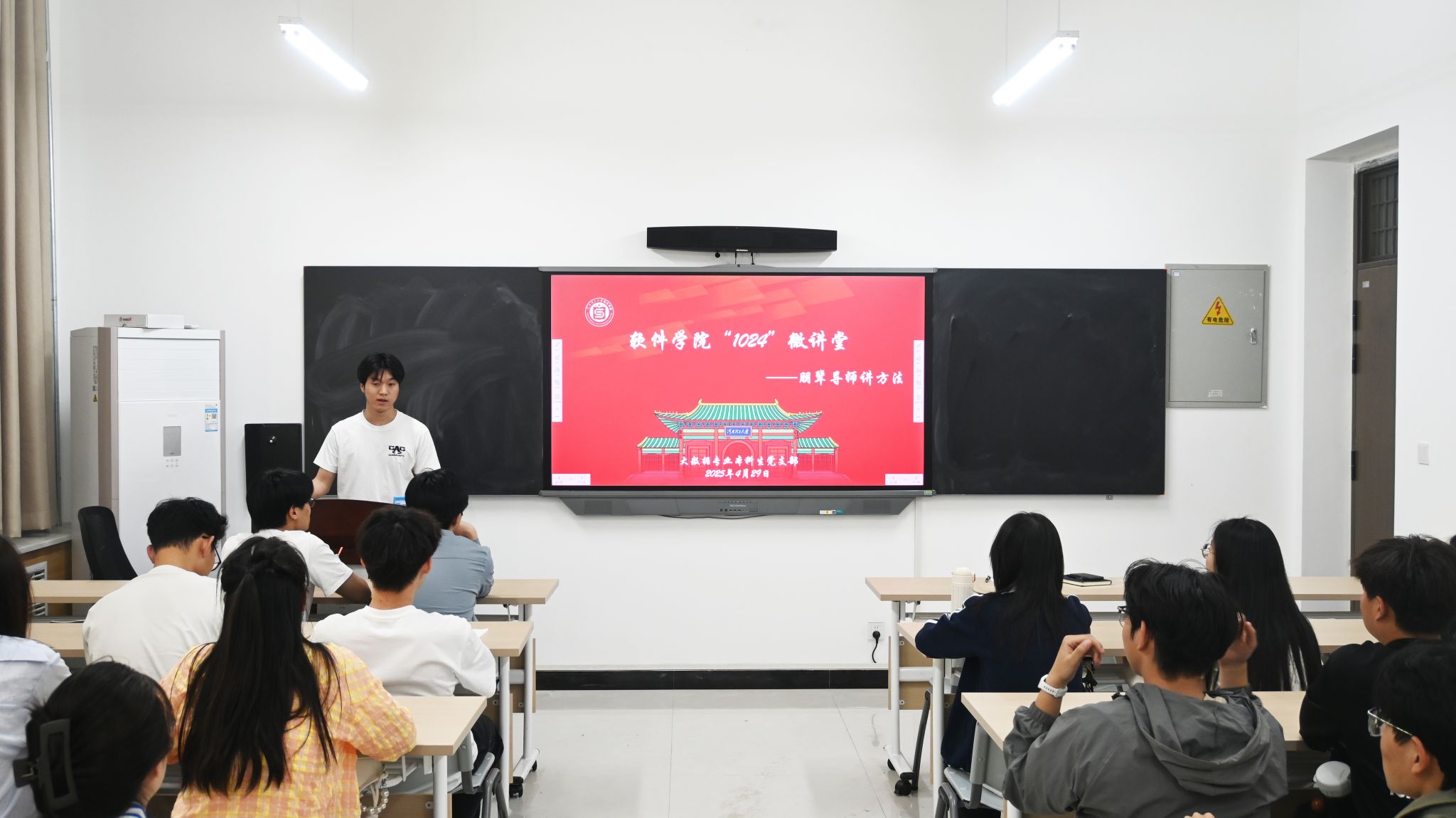为深入推进党建引领与朋辈互助相结合的学风建设新格局,4月29日,软件学院在多功能教室101开展“1024微讲堂”活动。本期活动以“朋辈导师讲方法”为主题,特别邀请张屹峰和侯帅威两位优秀学生代表担任主讲嘉宾,大数据专业本科生党支部党员、发展对象与积极分子参加。