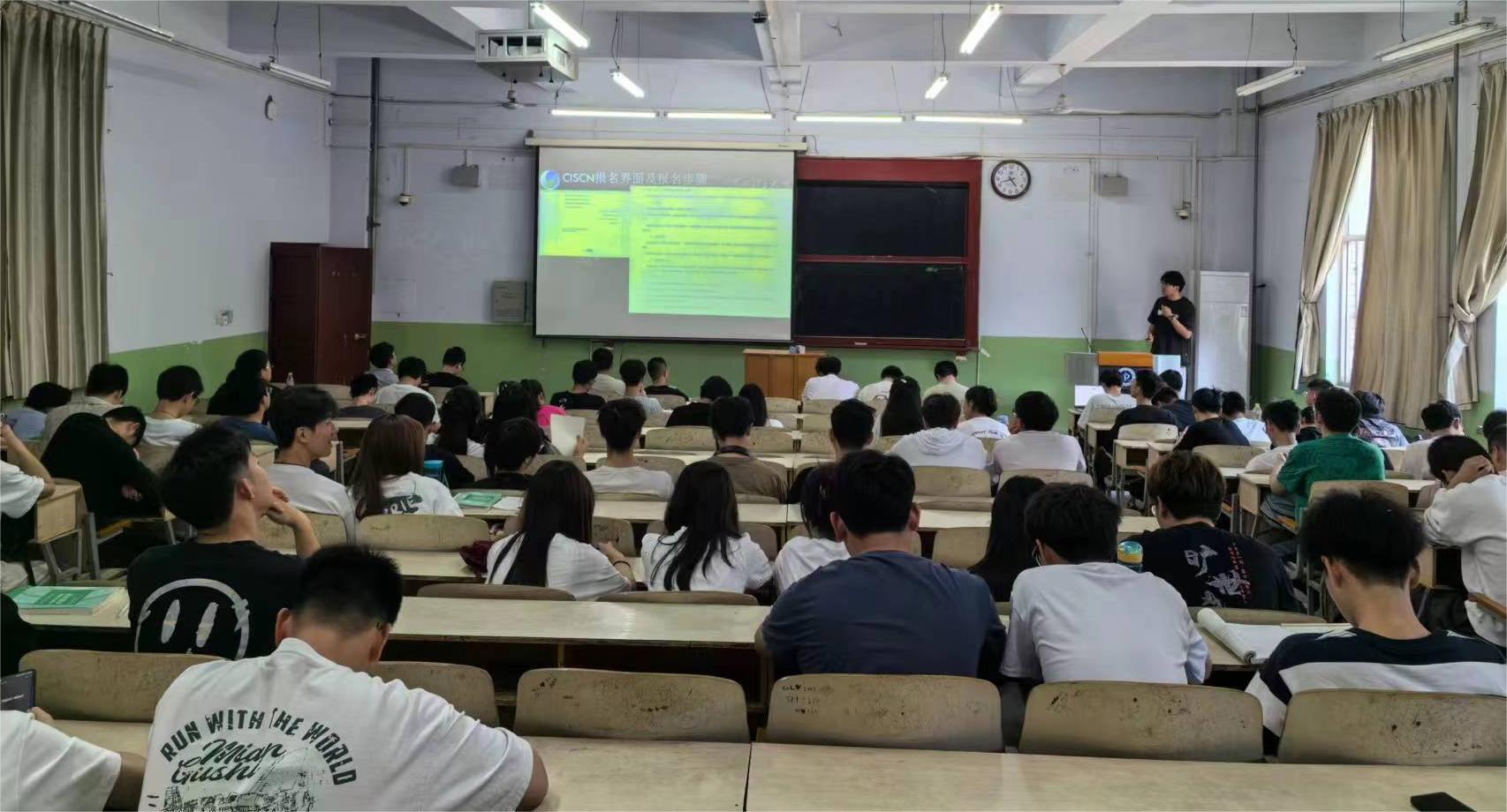 随后,天融信科技集团股份有限公司的网络安全专家郭万全老师为在场学生带来了关于网络安全专业考证、实习及就业问题的精彩分享。郭老师从行业发展的角度出发,深入剖析了网络安全专业的就业前景和市场需求。他详细介绍了各类网络安全证书的认证流程和要求,以及这些证书在求职过程中的重要作用。同时,郭老师还结合自己的丰富经验,为学生提供了宝贵的实习和就业建议,鼓励大家积极投身网络安全行业,为国家网络安全事业贡献力量。