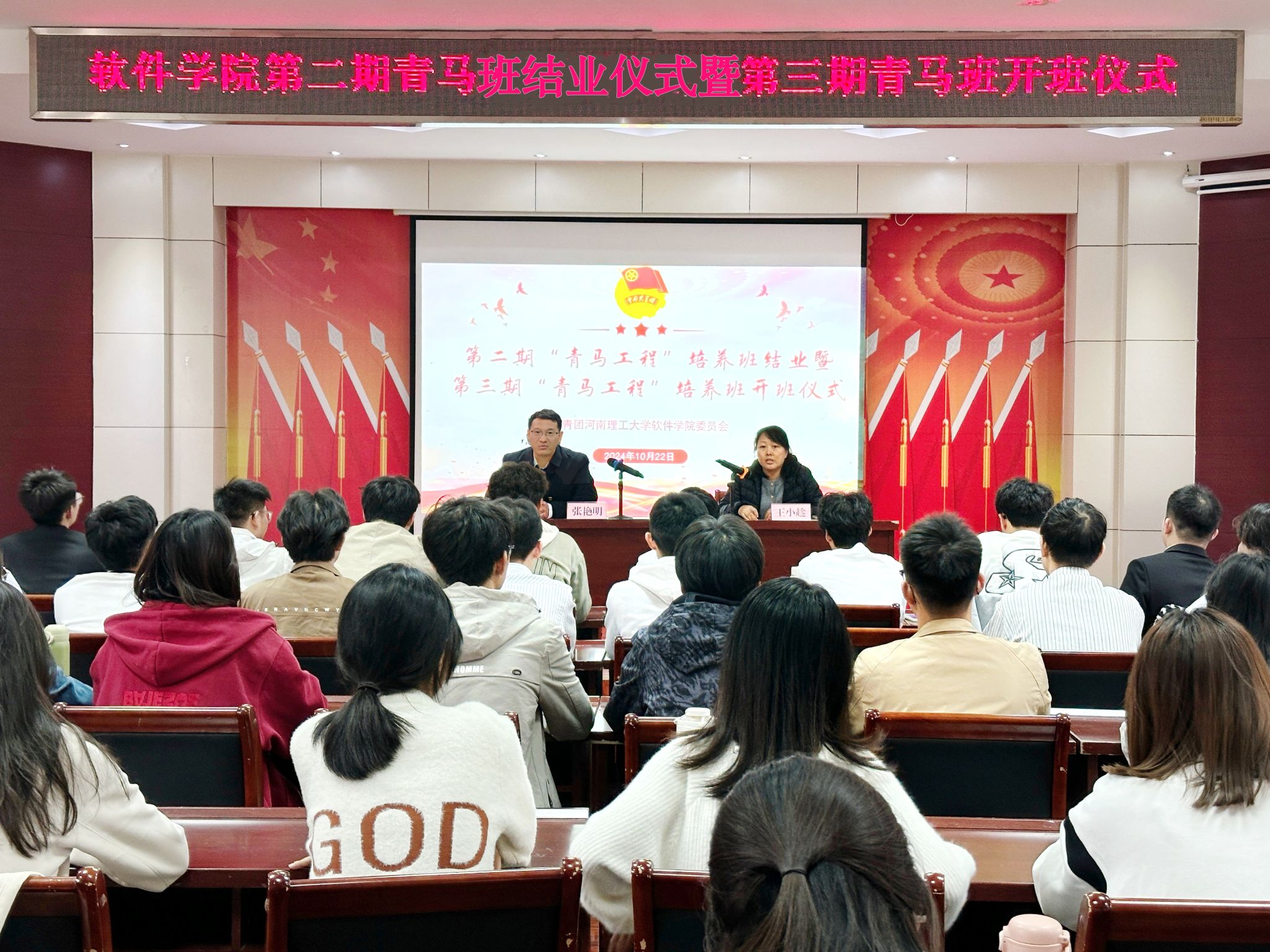 为深入学习贯彻党的二十大和党的二十届三中全会精神,推进新时期共青团思想引领工作,10月22日,软件学院第二期“青马工程”培养班结业暨第三期“青马工程”培养班开班仪式于北校区图书馆学术报告厅举行。学院党委副书记张艳明、团委书记王小趁,第二期、第三期“青马工程”全体学员参加仪式。