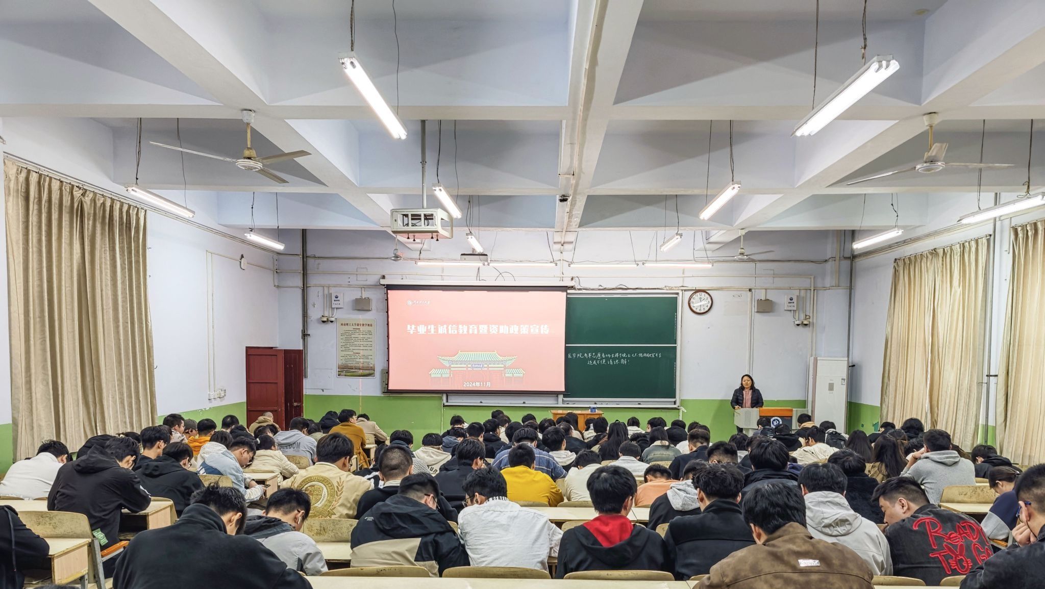 为做好国家助学贷款诚信还贷教育工作,让学生深入了解国家教育资助政策,2024年11月6日,我院针对2021级毕业班学生在北校区2205教室开展了诚信教育暨资助政策宣传会议。会议由毕业班辅导员王小趁老师主讲。