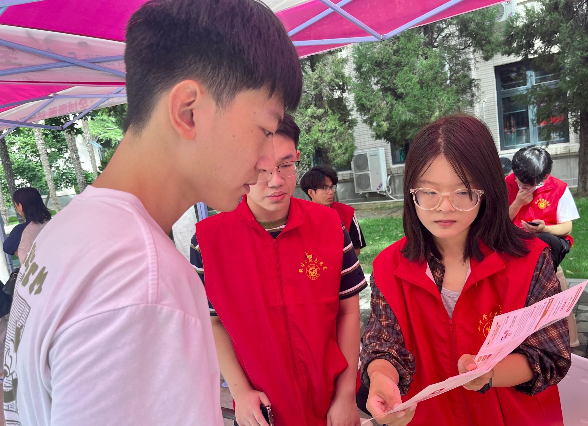 迎新现场,各支部党员佩戴党员徽章、亮明身份,组建“党员志愿服务队”,设立“党员迎新服务站”,活跃在校门、迎新点和宿舍楼之间。他们以饱满的热情投入志愿服务工作,耐心帮助新生搬运行李、细心指引校园路线、热心解答各类疑问,用周到服务化解新生初入校园的疑惑。从入学信息核验到生活物资搬运,从校园环境导引到宿舍入住安顿,学生党员志愿者们以汗水诠释担当,以微笑传递温暖,成为迎新现场一道亮丽的风景线。