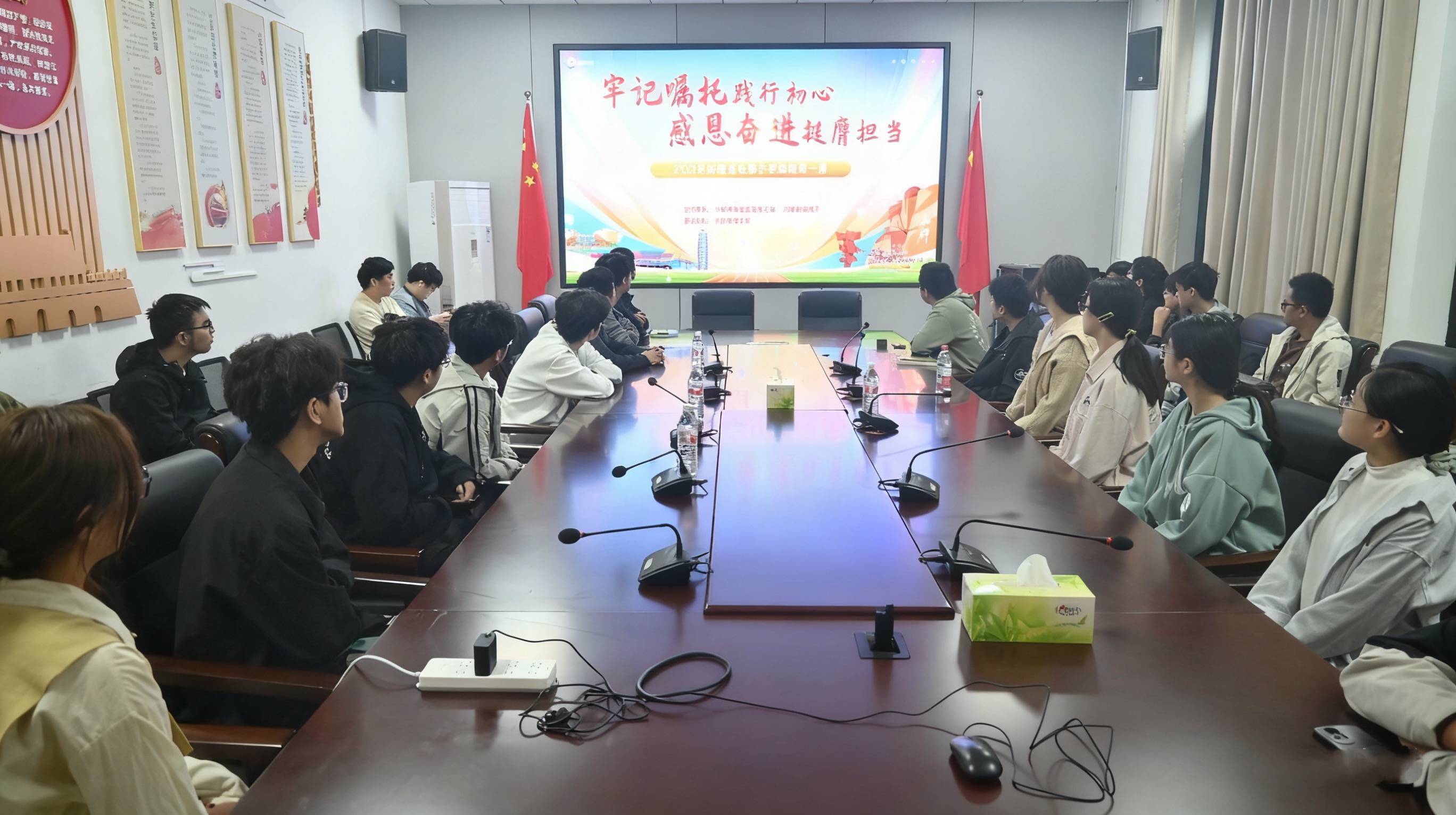 为深入学习贯彻新时代中国特色社会主义思想,引导青年学子坚定理想信念、明确新学期奋斗目标,9月22日上午,软件学院于223会议室组织部分学生集中收看“2025年秋季开学思政第一课”线上直播,软件工程2404班全体学生参加。