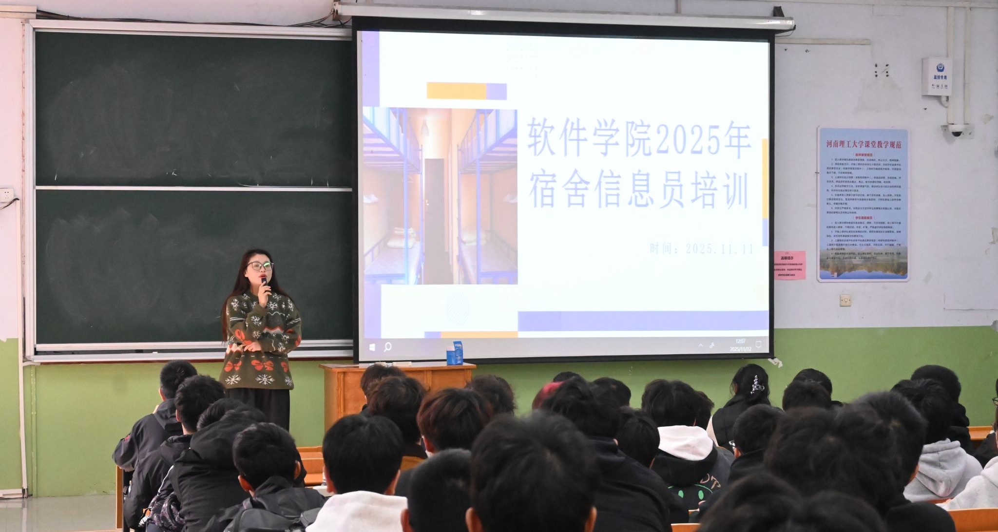 为持续筑牢校园安全防线,营造“安全、文明、温馨”的校园住宿环境与成长氛围,充分发挥宿舍长引领力和组织力,软件学院于2025年11月12日在2102教室组织召开了2025级新生宿舍长培训会。本次培训由2025级辅导员彭天姿主讲,学院全体2025级宿舍长参加。