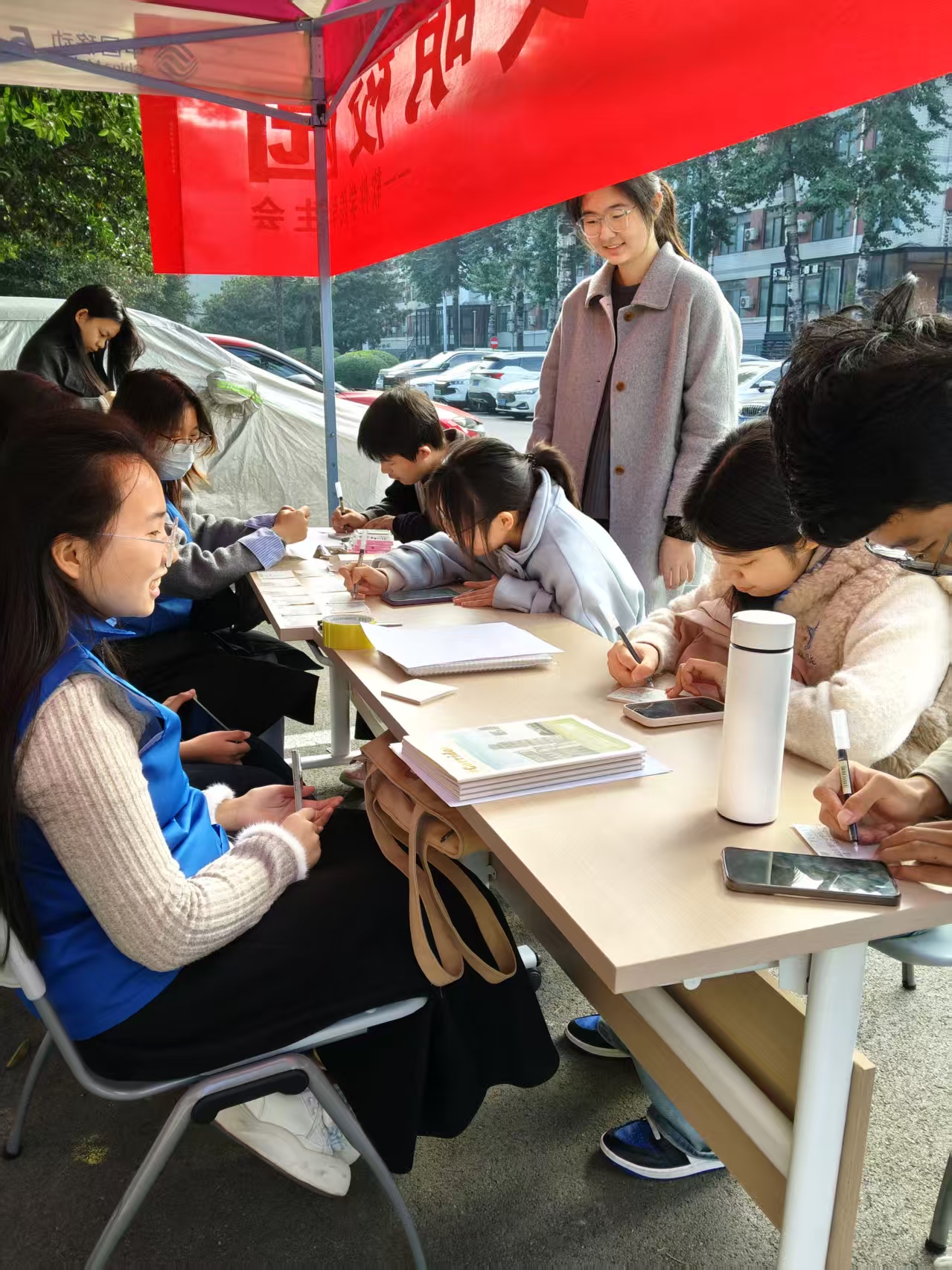 活动围绕“铸诚信之风,建文明校园”主题开展,内容包括“诚信知识问答”、“我的诚信宣言”、“诚信接力签名链”三个环节。“诚信知识问答”环节,同学们积极参与,通过回答与诚信相关的知识题目进一步加深了对诚信内涵的理解;“我的诚信宣言”环节吸引了大量同学驻足书写,他们在便签上写下真诚而朴实的承诺,将个人诚信与校园文明紧密联系在一起;“诚信接力签名链”环节,同学们依次留下姓名与诚信关键词,象征着诚信精神在青年群体中的传递与延续。活动过程中,生活学习部成员认真做好组织与服务工作,确保同学们在轻松活跃的氛围中完成学习体验,现场气氛热烈、秩序井然。