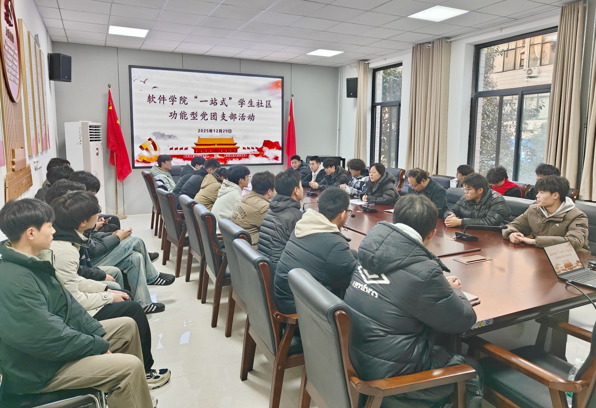 为进一步深化学院“一站式”学生社区建设成效,提升学生宿舍的组织凝聚力与文化建设水平,12月29日,软件学院于223会议室开展“一站式”学生社区功能型党团支部交流会。学院学工办主任刘军、团委书记王小趁及党团支部全体学生参加此次活动。