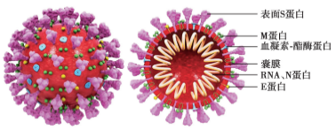 病毒表面有四种蛋白,其中刺突蛋白(S蛋白)使其形如冠状,因而得名(高等学校新型冠状病毒肺炎防控指南)
