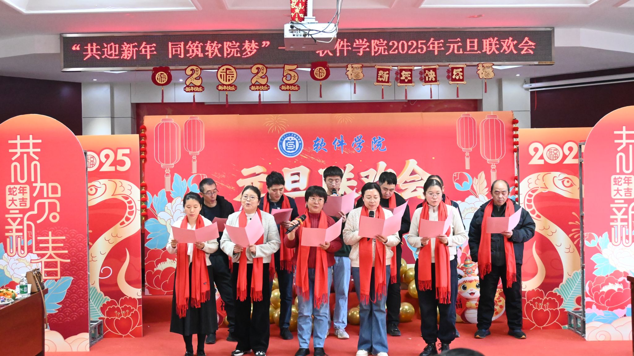 盛世启新程,华章谱新篇。12月31日下午,软件学院在北校区图书馆报告厅举办“共迎新年,同筑软院梦”2025年元旦联欢会,师生们齐聚一堂,共度佳节。