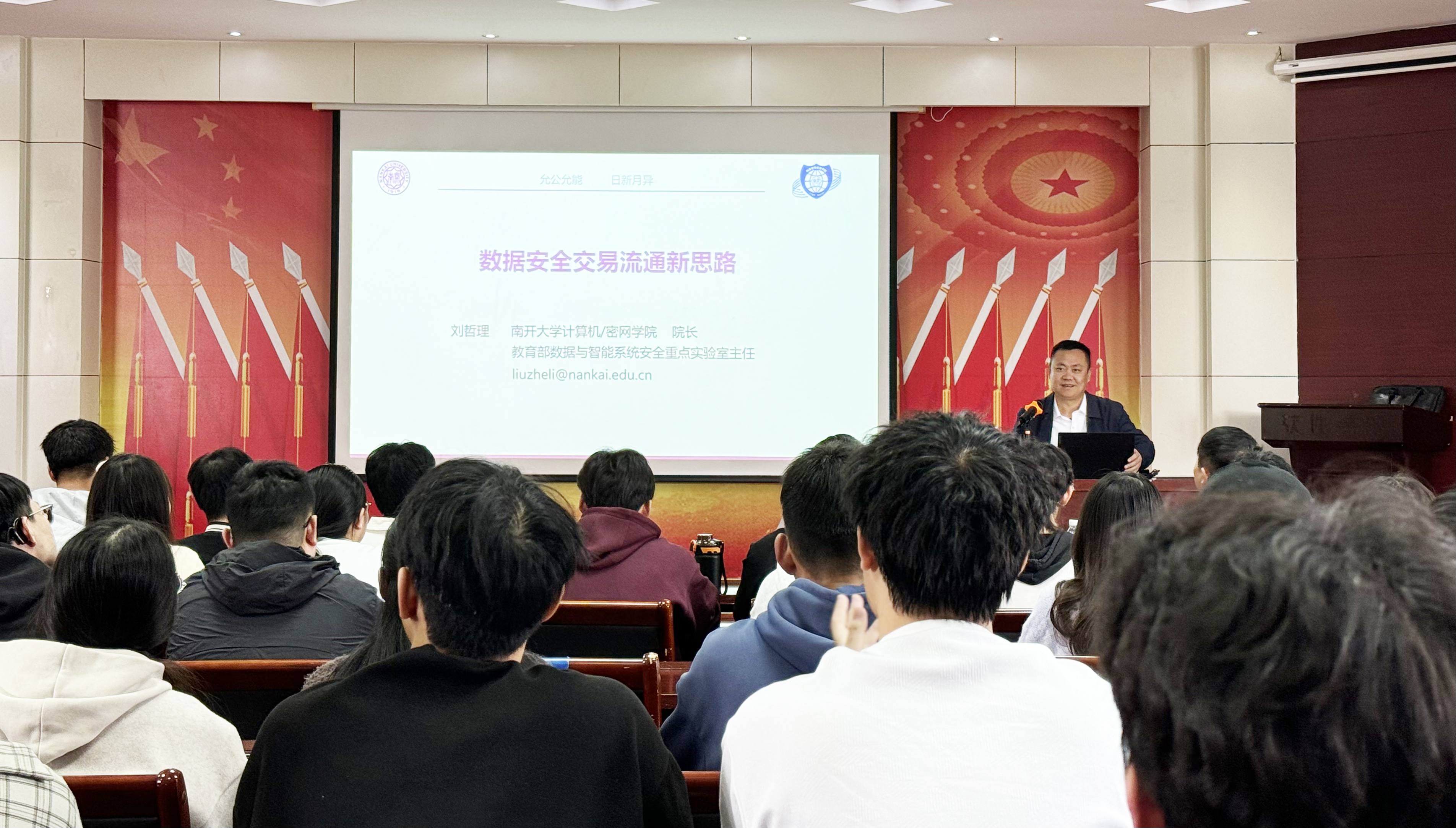 10月14日下午,软件学院特邀南开大学国家级高层次人才刘哲理教授和国家级青年人才汪定教授,在北校区图书馆学术报告厅分别作题为《面向数据安全交易流通的新思路》和《如何保护口令密钥安全》的学术报告,学院师生共同聆听了讲座。报告会由学院副院长汤永利主持。